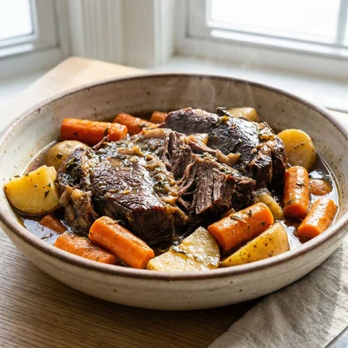 This pot roast is pure comfort in a bowl! Serve it up with the tender potatoes and carrots right out of the crockpot, spooning that rich, savory cooking liquid over everything. It’s fantastic on its own, but if you want to stretch it even further or add a green, a simple side salad or some crusty bread for dipping is perfect. And the leftovers? Oh, they are GOLD. This freezes beautifully in individual portions, making for effortless lunches or quick dinners later in the week. Just thaw, reheat, and enjoy that ‘made from scratch’ goodness without the work!
